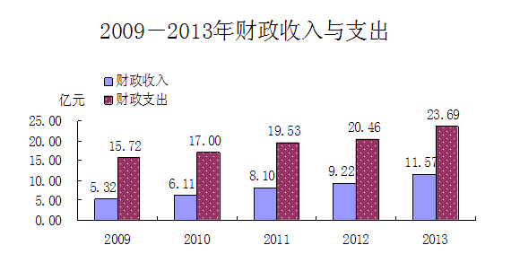 2013年,全市實(shí)現(xiàn)公共財(cái)政預(yù)算全口徑收入115747萬(wàn)元,比上年增加23593萬(wàn)元,增長(zhǎng)25.6%,其中:實(shí)現(xiàn)公共財(cái)政預(yù)算地方級(jí)收入77427 萬(wàn)元,比上年增加14043萬(wàn)元,增長(zhǎng)22.2 %。全市完成公共財(cái)政預(yù)算支出236874萬(wàn)元,比上年增加32315萬(wàn)元,增長(zhǎng) 15.8%。