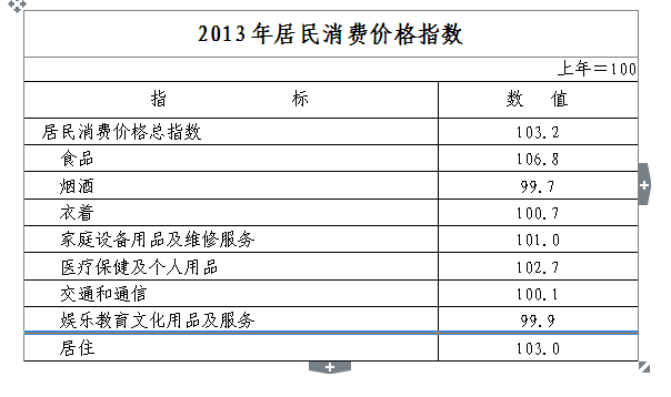 全年居民消費(fèi)價(jià)格上漲3.2%(以上年為100,下同), 漲幅比去年同期上升1.1個(gè)百分點(diǎn)。其中,食品類價(jià)格上漲6.8%,煙酒類價(jià)格下降0.3%,衣著類價(jià)格上漲0.7%,家庭設(shè)備用品及維修服務(wù)類價(jià)格上升1.0%,醫(yī)療保健及個(gè)人用品類價(jià)格上漲2.7 %,交通和通信類價(jià)格上漲0.1%,娛樂(lè)教育文化用品及服務(wù)類價(jià)格下降0.1%,居住類價(jià)格上漲3.0%。